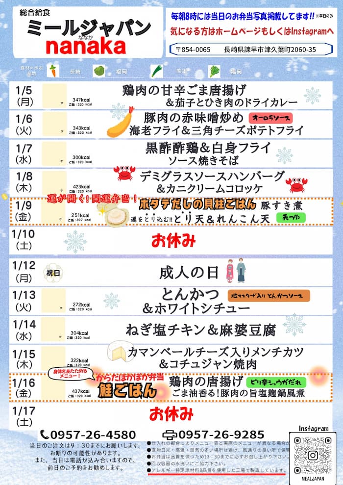 1月5日~1月17日nanakaのお弁当 - 株式会社ミールジャパン