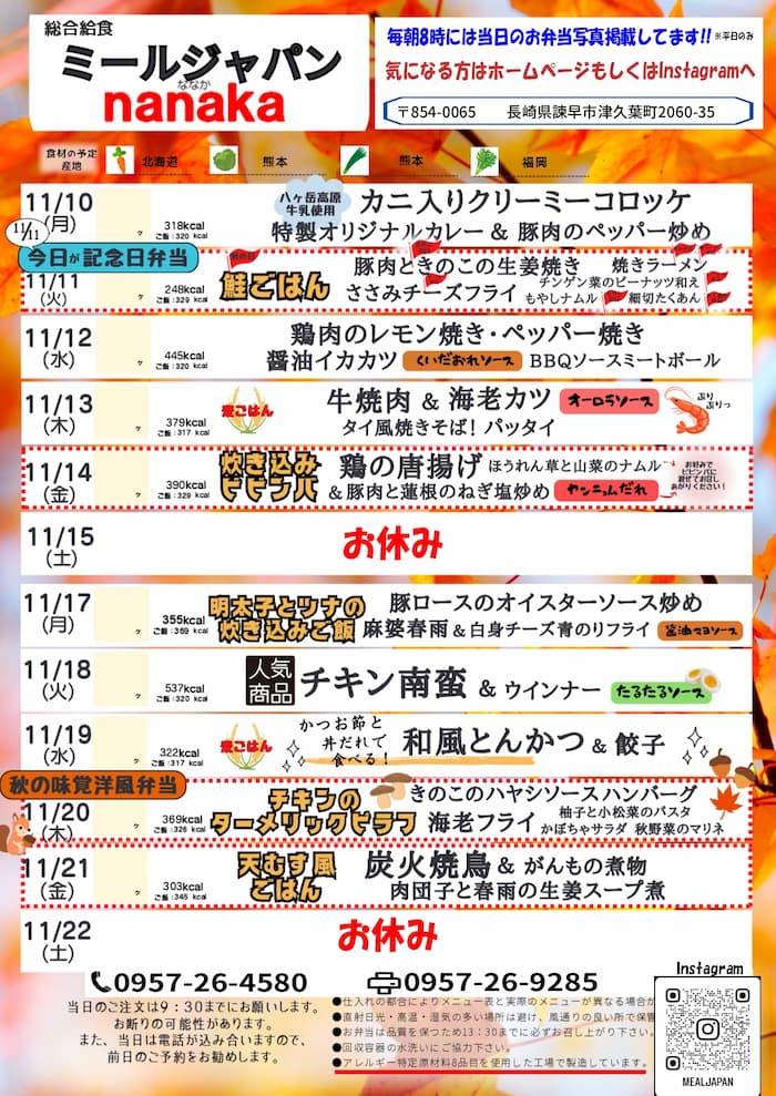 11月10日~11月22日nanakaのお弁当 - 株式会社ミールジャパン