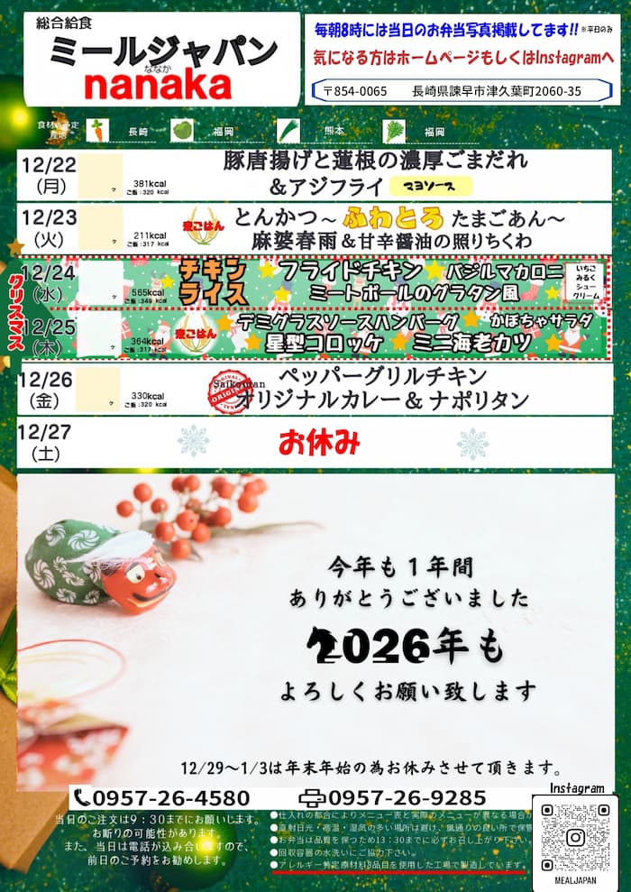 12月22日~12月27日nanakaのお弁当 - 株式会社ミールジャパン