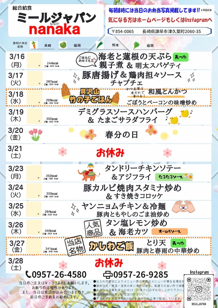 3月16日~3月28日nanakaのお弁当 - 株式会社ミールジャパン