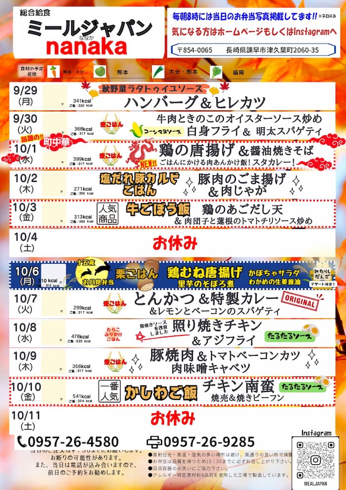 9月29日~10月11日nanakaのお弁当 - 株式会社ミールジャパン